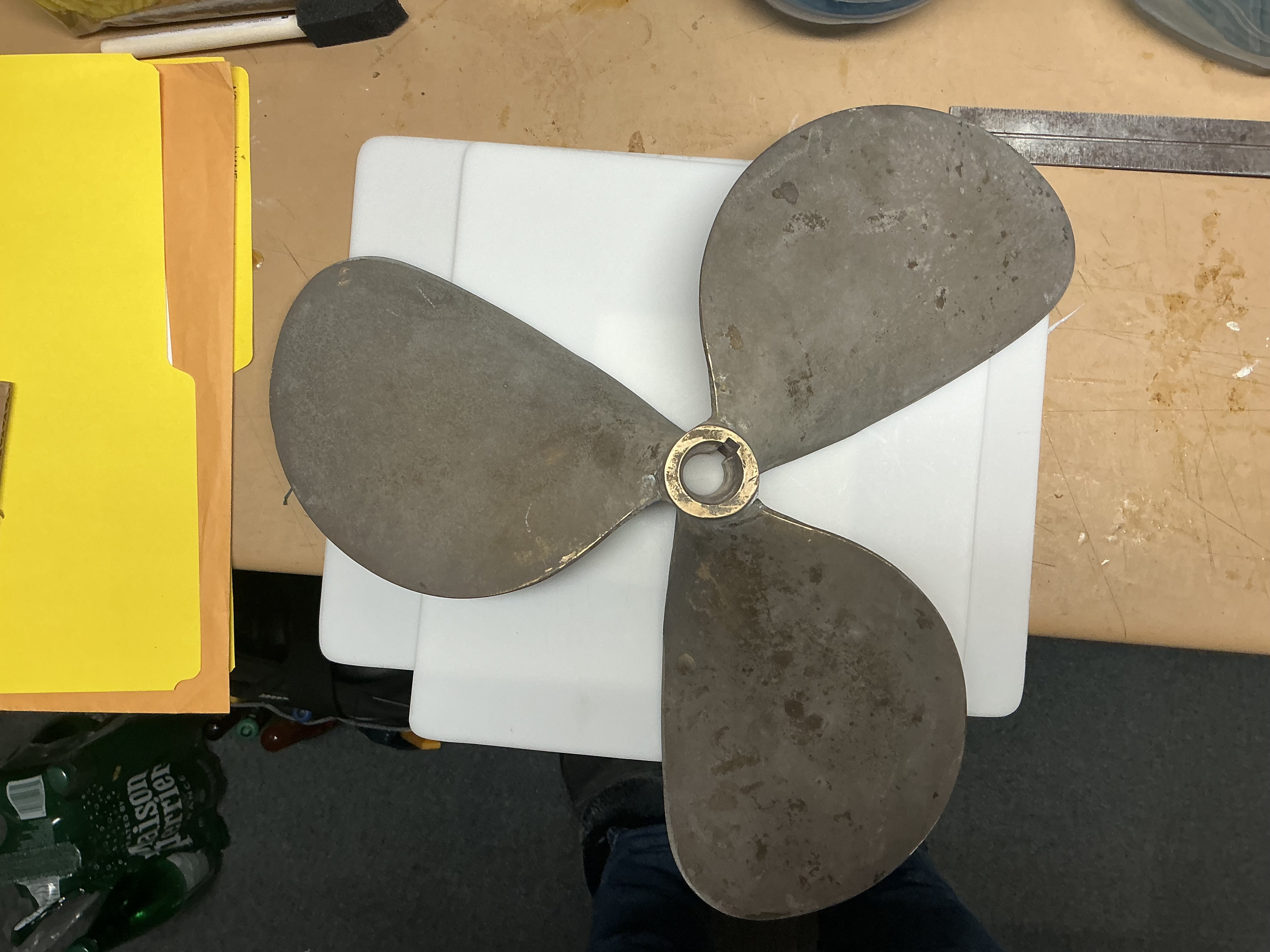 Hélice de voilier à 3 palles fixes de 16 pouces et pas de 10 pouces sur arbre de 1 pouce. Idéale pour voilier de 27 à 34 pieds et moteur de 20 à 30 HP.