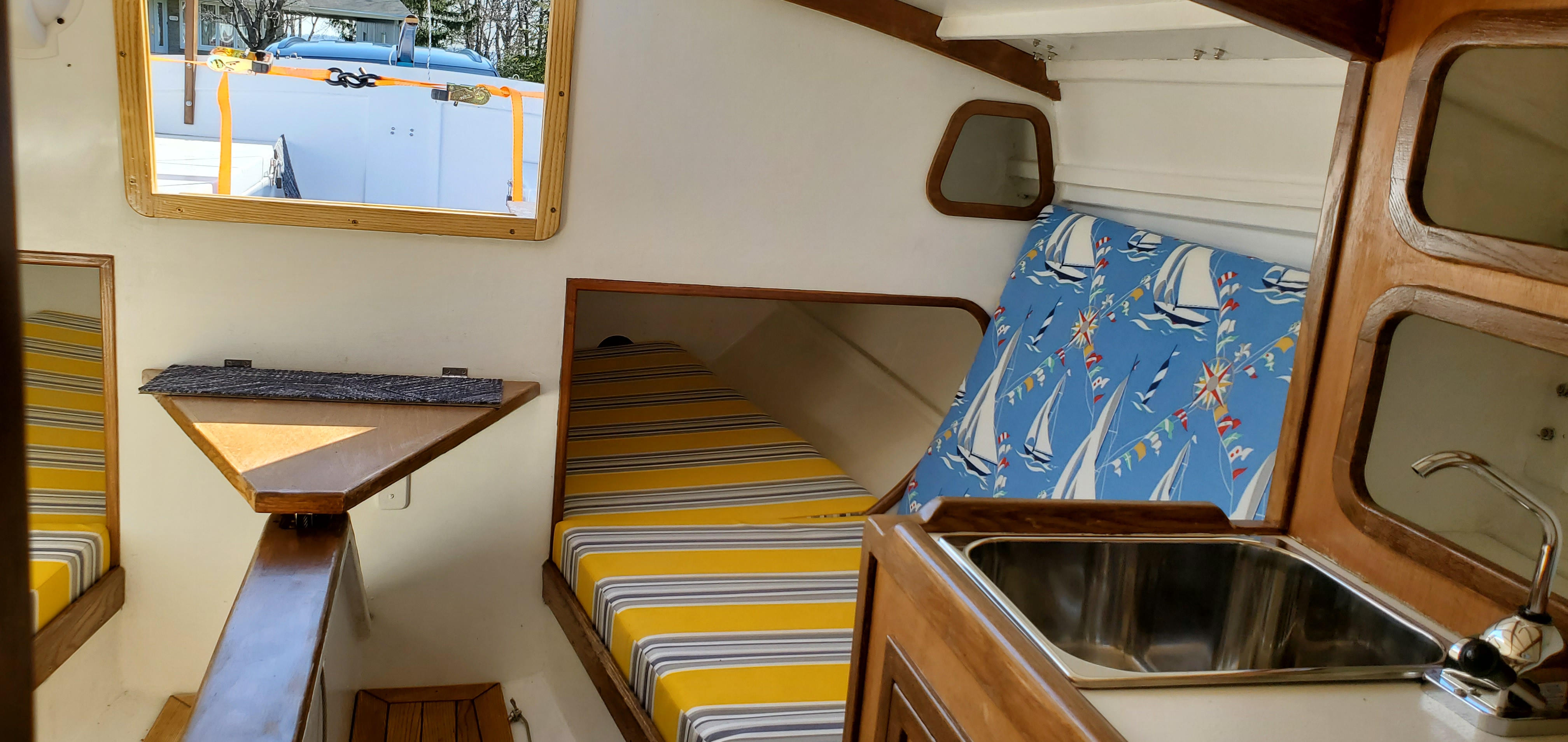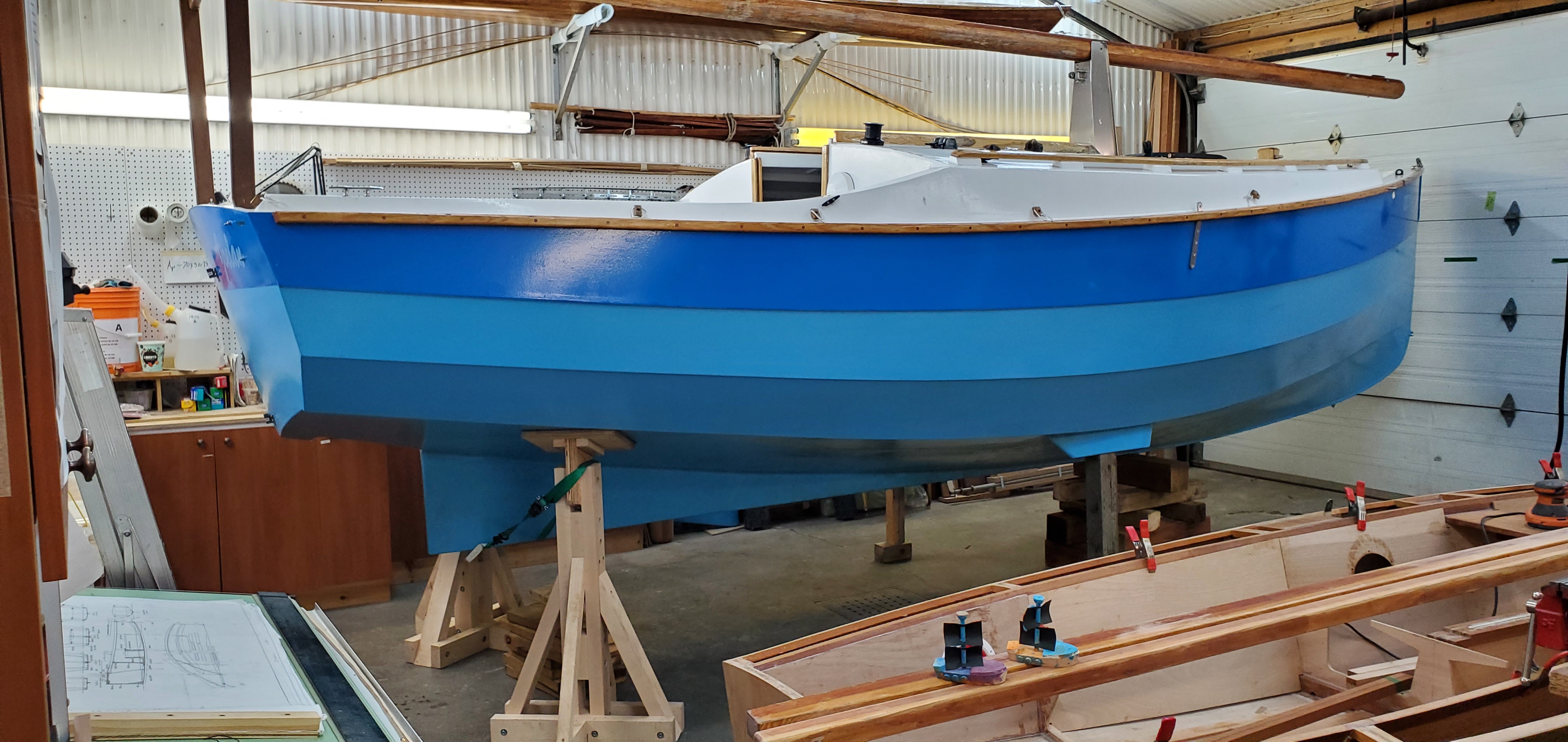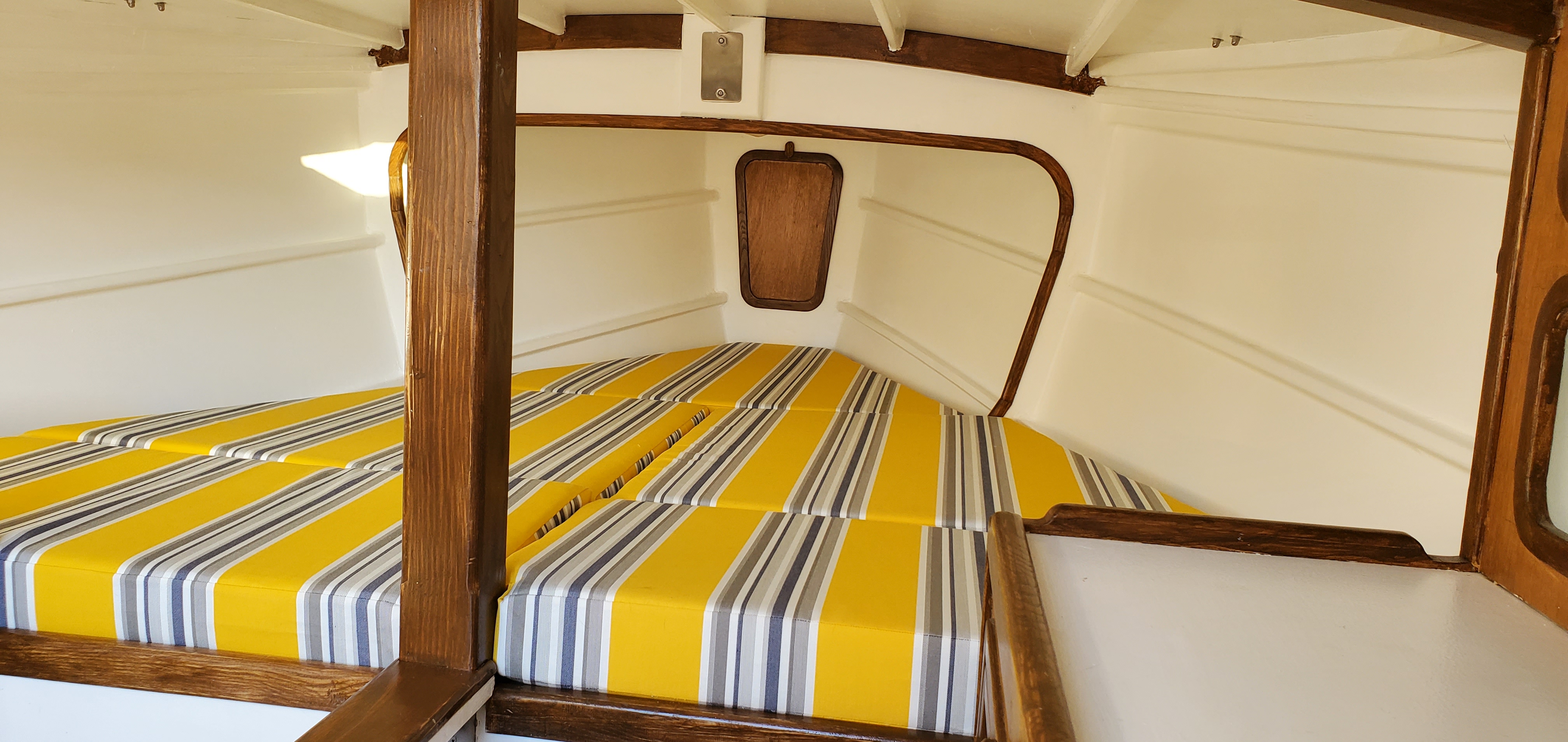 Construit en contreplaqué marine à clins avec revêtement époxy. Gréement classique de type cotre. La grand-voile est une voile aurique à corne. Le génois et le Yankee sont montés sur enrouleurs. Dérive rétractable en acier galvanisé. Le cockpit est spacieux et confortable. Deux couchettes arrière sont aménagées sous le cockpit.