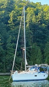 Bateau impeccable, navigation Lac Champlain exclusivement, genois 140% (2022), panneaux solaires 370 watts, full enclosure (2017), coussins intérieurs (2022), mooring 2023 payé, ber et toile d’hiver compris. Deuxième propriétaire.